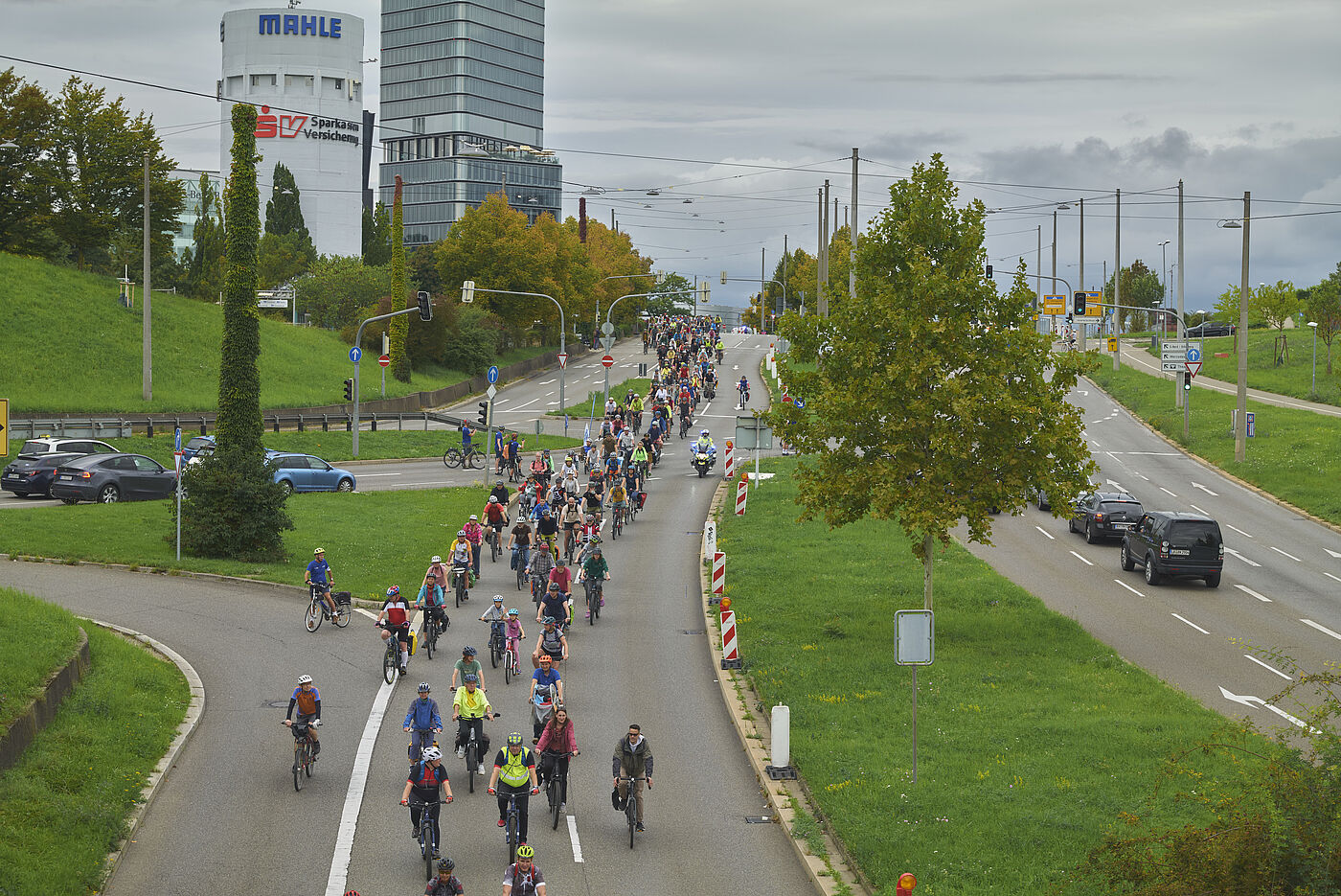 5.400 Radfahrende rollen über die großen Bundesstraßen in die Landeshauptstadt zur Kundgebung mit Politprominenz.