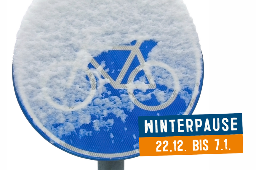 Das Team des ADFC Baden-Württemberg legt eine Winterpause ein: vom 22.12.2025 bis einschließlich 6.1.2026 bleiben unsere Türen geschlossen. Wir tanken Energie, pflegen die Ketten und lassen das alte Jahr friedlich ausrollen.