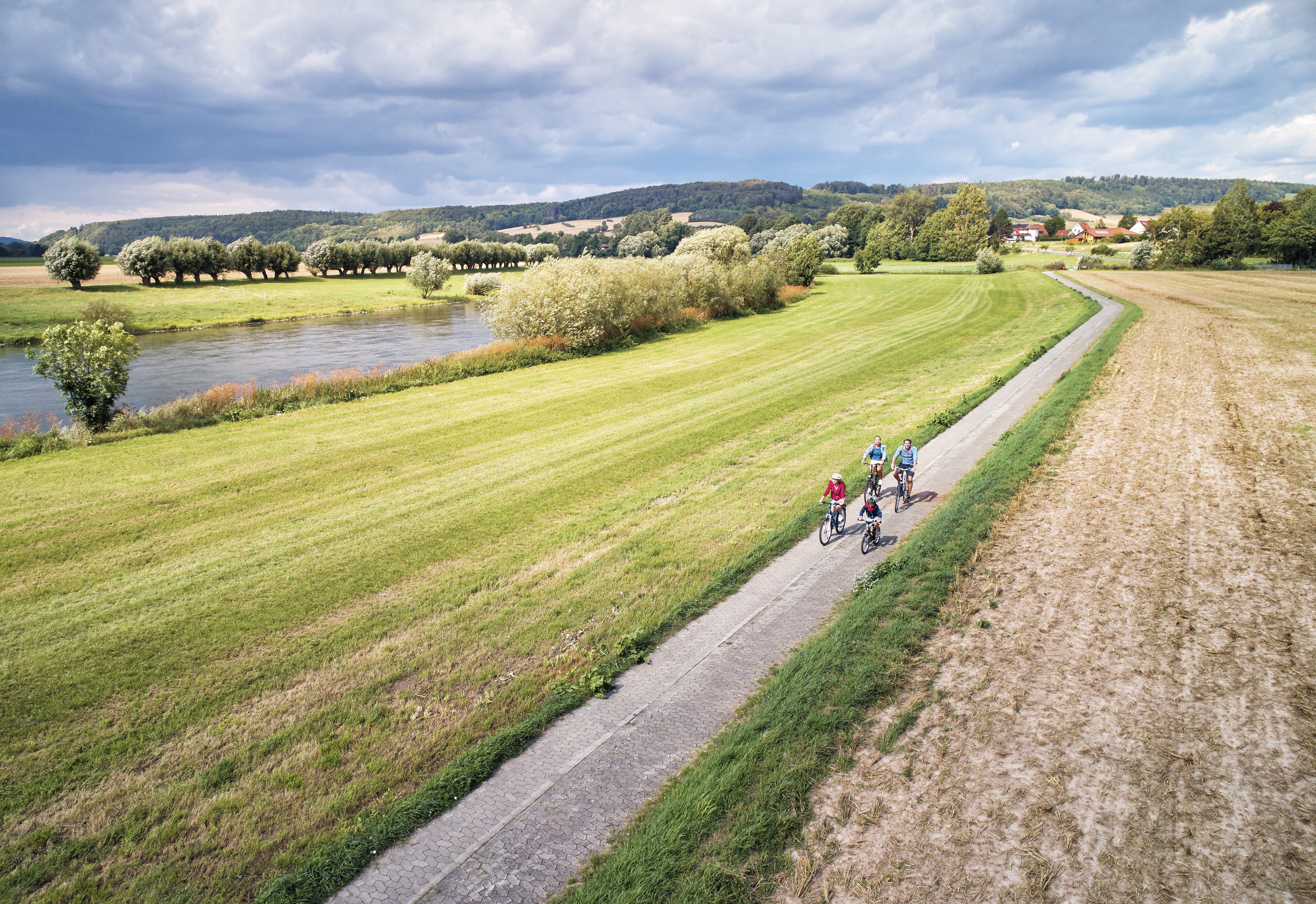 Mit der Familie im Radurlaub - hier auf der ADFC-Qualitätsradroute Weser-Radweg.